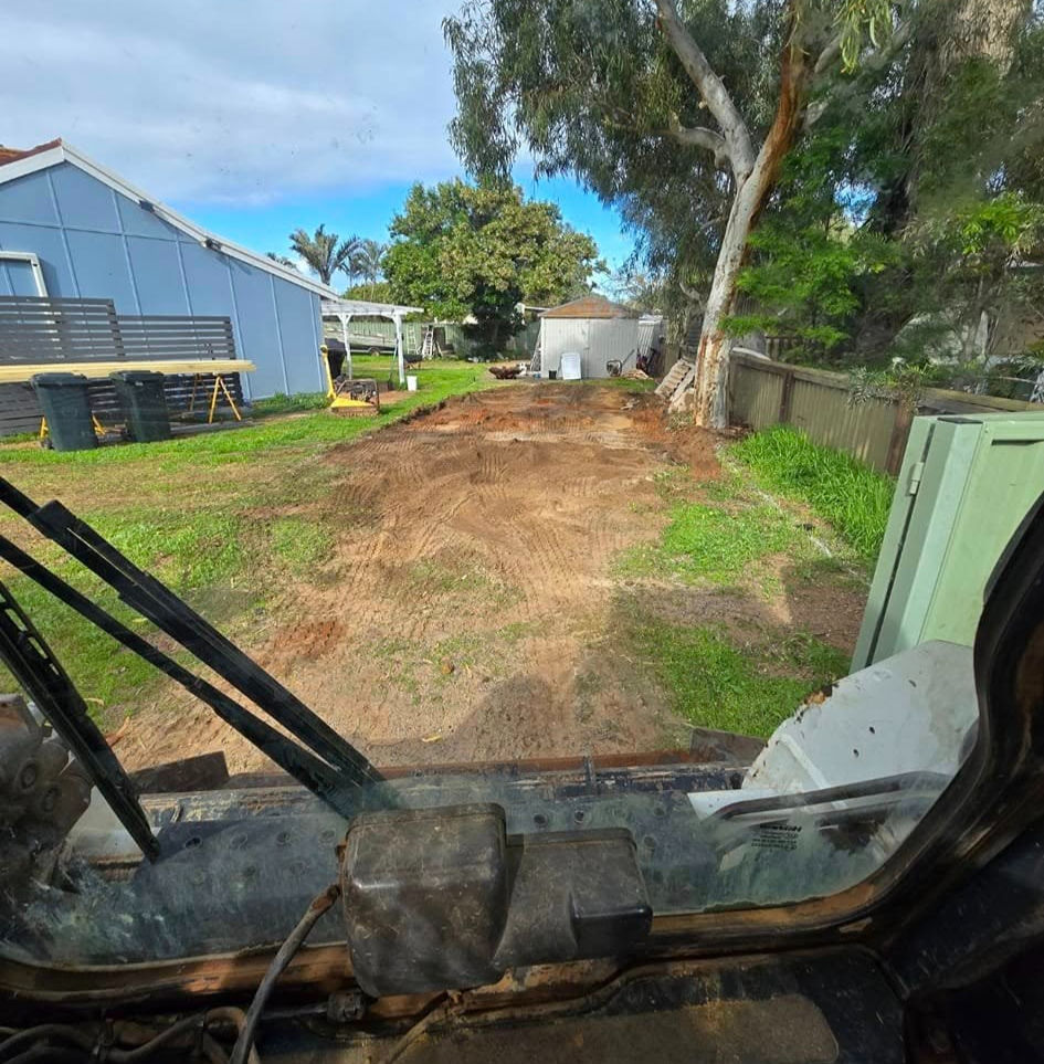 Rear yard revamp for a return customer, remove old garden bed wall and replace with a small retaining wall, and a driveway construction.